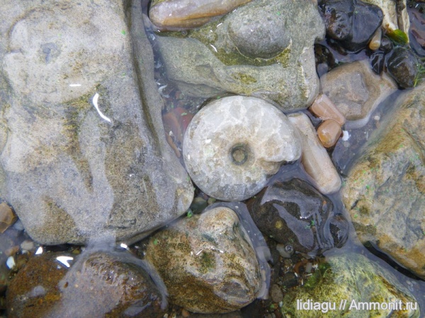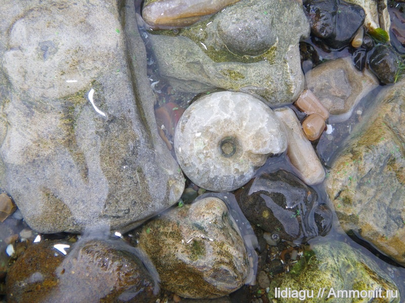 Буквально на пол дня выдалась хорошая погода, поэтому удалось пробежать берегом от устья Кашпирки до шахты. Фотографировала только кальцитовые аммониты перед тем, как поднять. | ||||||