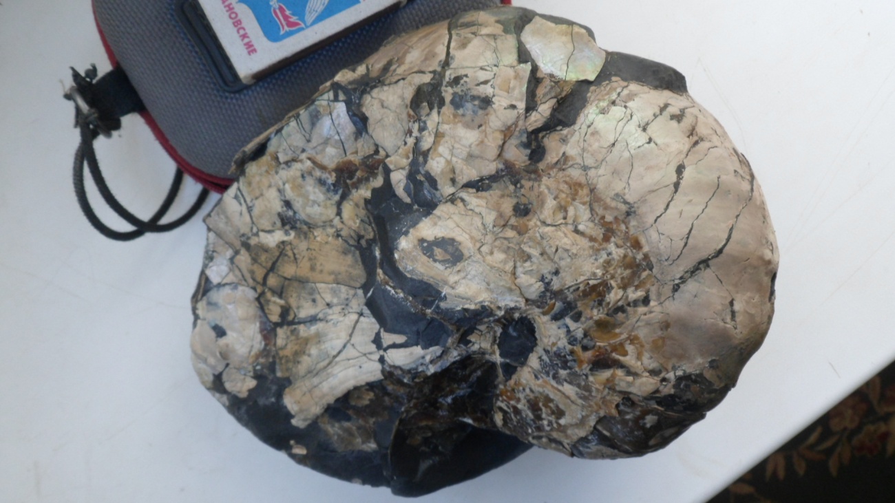 раздавленный Nautilus из слоев верхний апт на нем хорошо видно линии роста раковины как и современных Nautilus pompilius.