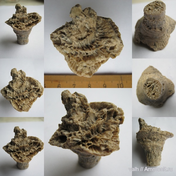 Такой раскрывшийся кораллит находился рядом с массивной колонией коралла Actinocyathus sarytschevae.Но в виду отсутствия лонсдалоидных диссепиментов по периферии коралла,я пришёл к выводу что это фрагмент Corwenia sp. Предполагаю что кораллит был повреждён какой то рыбой и полип закончил жизнь в её желудке.