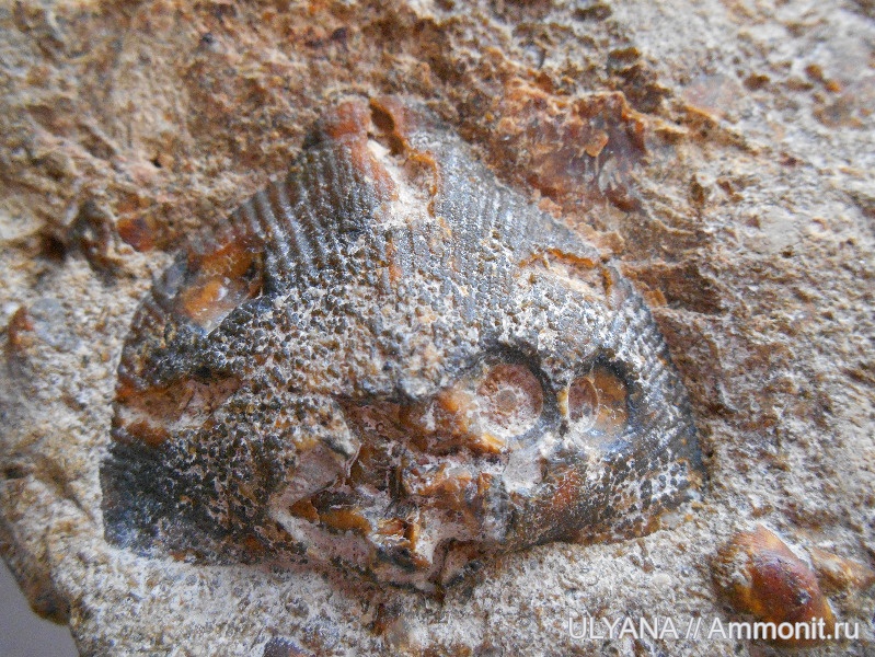Да, интересные отверстия. Бывает что если членик морской лилии прямо под раковиной оказывается, то раковина над ним может легко сколоться. Может и тут так было? | ||||||
