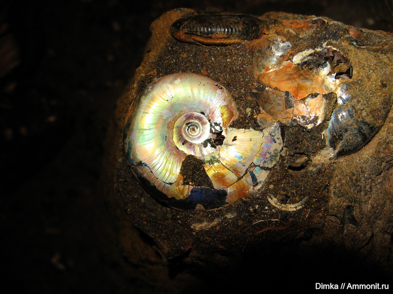 Сияние аммонита на тёмном фоне, придаёт фото какую-то особую загадочность. | ||||||