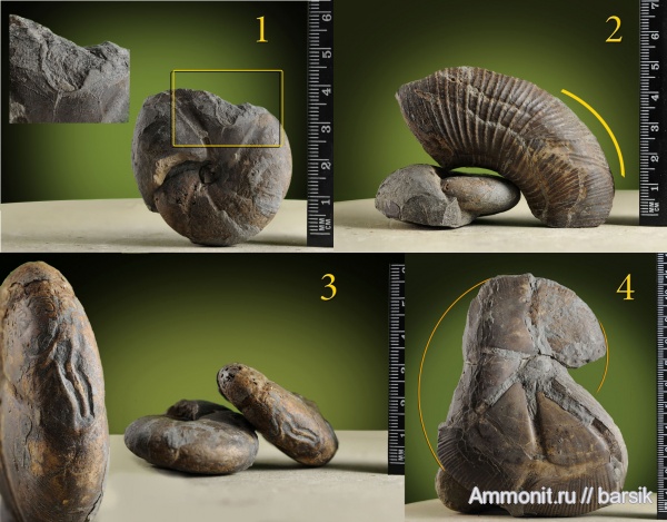 3 да, странная. Место для вентрального укуса волне подходящее, но не форма. И меня смущают какие-то полосы, которые идут влево от борозд. Будто заполнение чьих-то ходов. | ||||||