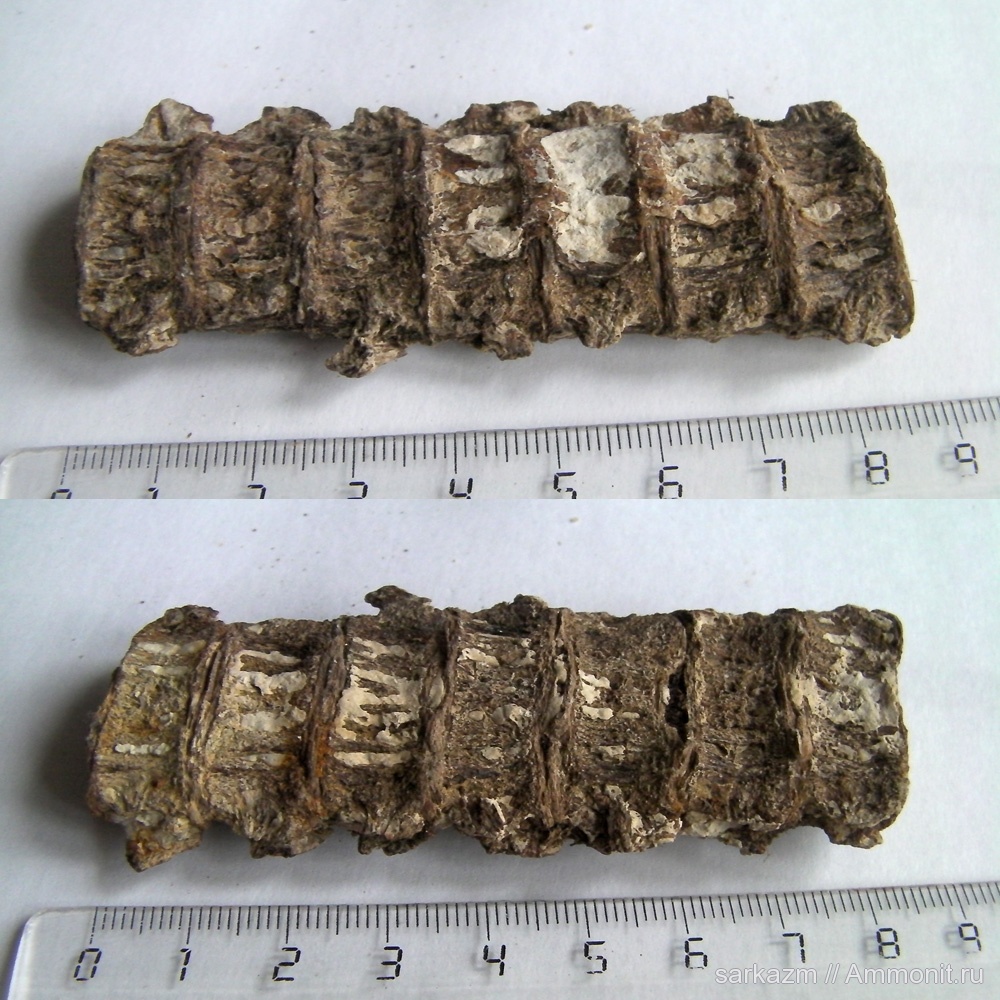 Это трагическая история)) Именно эти позвонки и были в полном составе, не разбросаны по верху, а зарыты под небольшим углом в составе полного скелета (правда, ни хвоста, ни головы я не так и не увидела). Я только начала его откапывать, извлекла три фрагмента, как мне необходимо стало все бросить и уехать. Очень жаль, могло откопаться что-то интересное... | ||||||