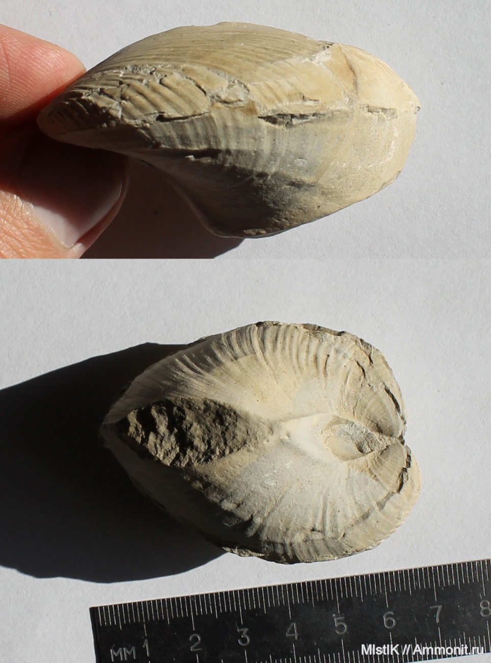 непонятная. Сверху смотришь-Иноцерамус, снизу - брахиопода. Но все же это двустворка,но какая? Дайте еще вид сбоку.Скорее это Иноцерамус... | ||||||