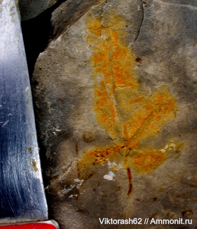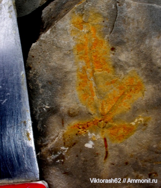 Вчера еще один листочек нашел и кстати, рядом с двустворкой-миниатюрным Иноцерамусом(все на одном камушке). Вот и думай теперь,как это все увязать - море и суша рядом. | ||||||