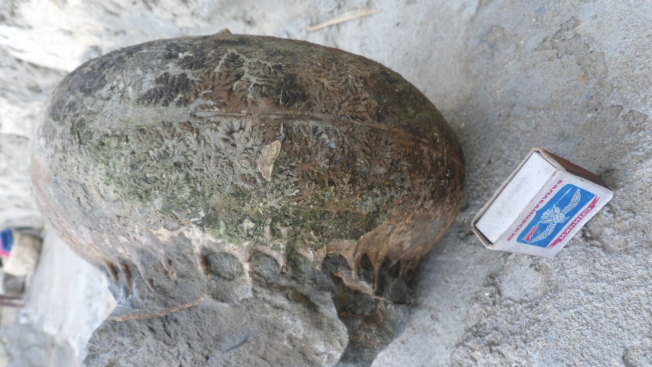 другая сторона аммонита хорошо видно какой он был шипастый ,пришлось оставить породу чтоб сохранить шипы