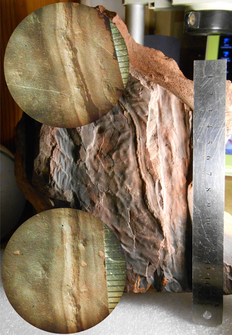 Сегодняшняя находка. Снова на стволе наблюдается борозда. В ней, едва прослеживаются, но все же можно увидеть микрорубцы. Это уже тянет на характерную особенность :)