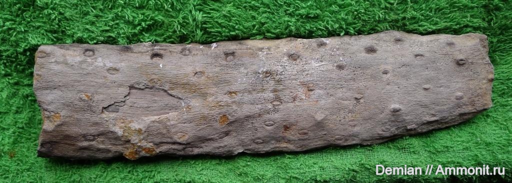 Так из Липиц и есть. По залеганию ничего сказать не могу, эти слоистые валуны, возможно относятся к отвалам, так как не закрыты четвертичкой. С этой стороной карьера вообще не очень понятно (мне во всяком случае, а посоветоваться сейчас не с кем (( ). За отсутствие размера прошу простить, торопился... ширина 5см, длина 23см | ||||||