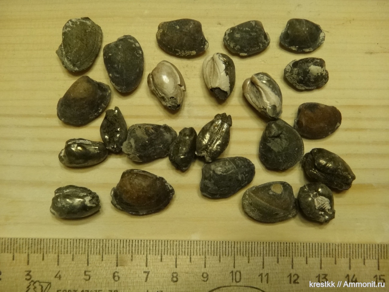 И то и другое - тут сохранился и белый раковинный слой (например три штуки во втором ряду сверху) и есть пиритизированные ядра. В Михайлове в келловее есть похожие такой же сохранности.