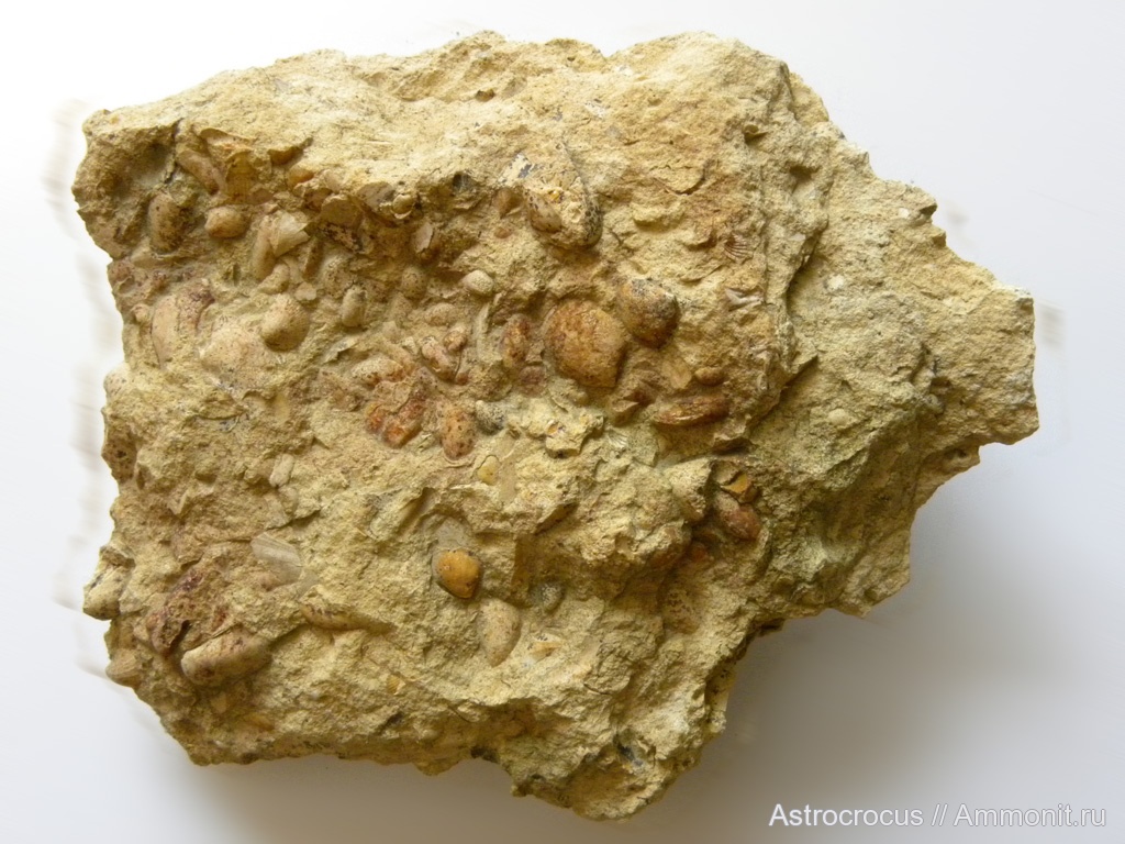 Небольшой обломок донного слоя 80Х95 mm.Max. с включениями мелких раковин брахиопод и двустворок.