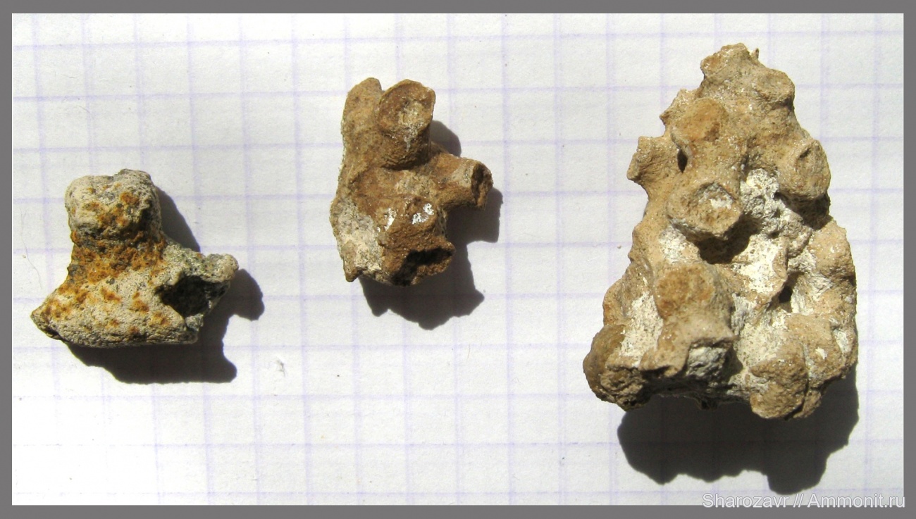 Фрагменты губок из сеноманских песков Волгоградской области.
