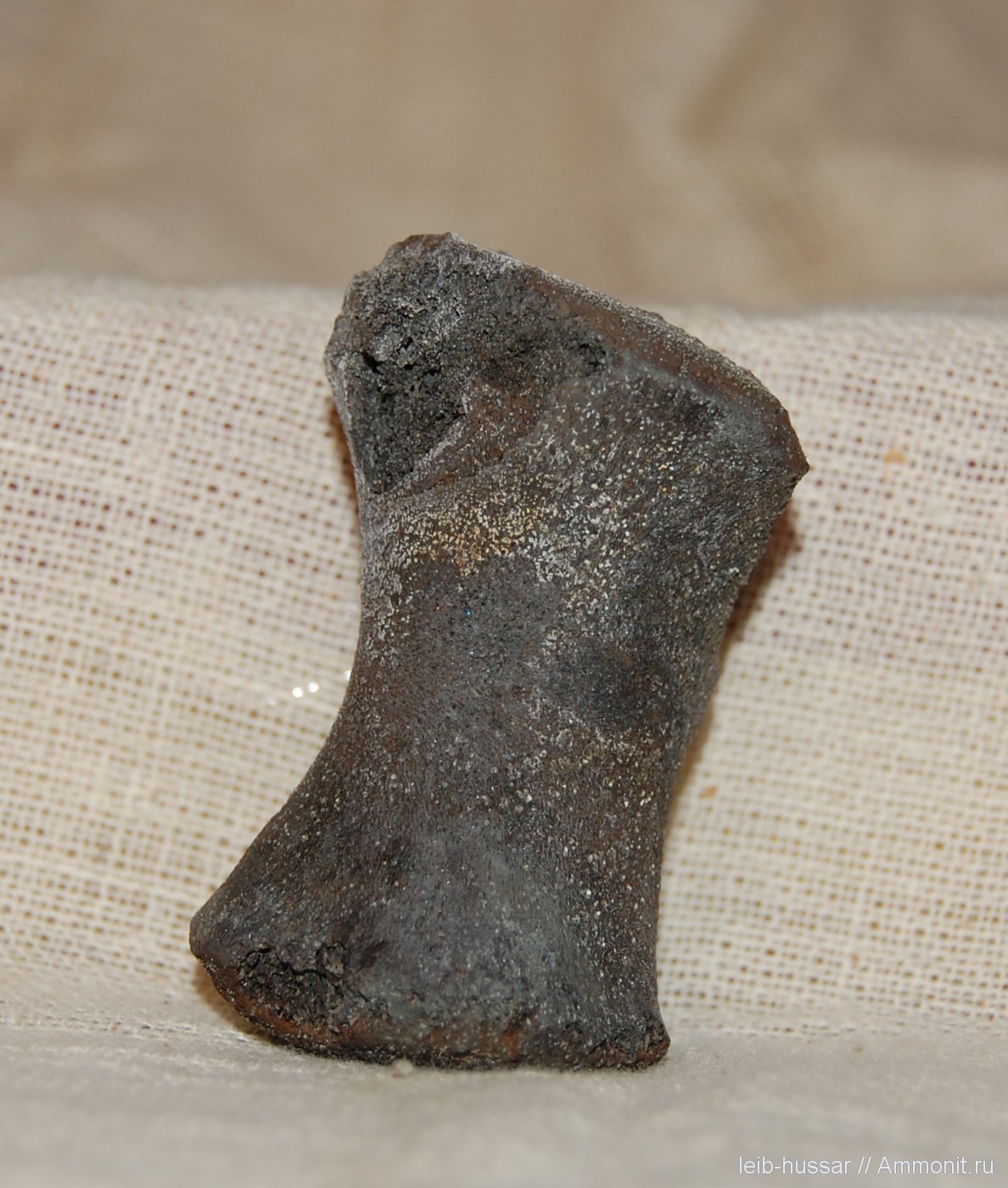 Одна из костей, найденных в отвалах юрских глин на Егановском карьере. Высота - 7,8 см; толщина от 3,9 до 2см.