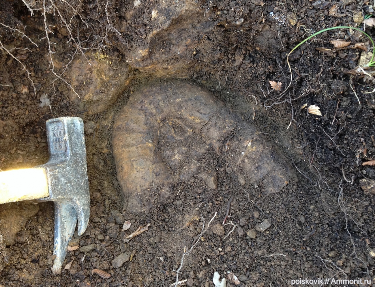 Гетероморфный аммонит с макс. диаметром раковины - 7см на месте находки. Готерив