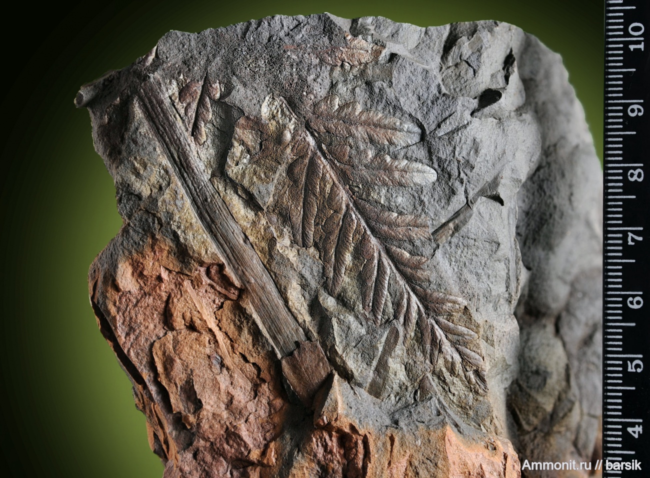 В этом случае фрагмент определяется однозначно. На снимке часть растения слева может оказаться не только центральной жилкой сложного листа, но и отпечатком листа кордаита.