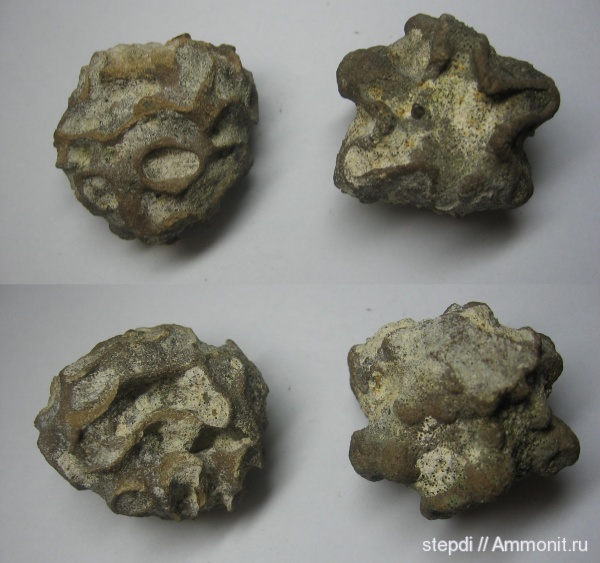 Предположительно губки Plocoscyphia sp. Найдены в заброшенном меловом карьере "Хотиново" Любанского района Минской области (Беларусь). Верхнемеловой период. Размер губок около 30 мм.