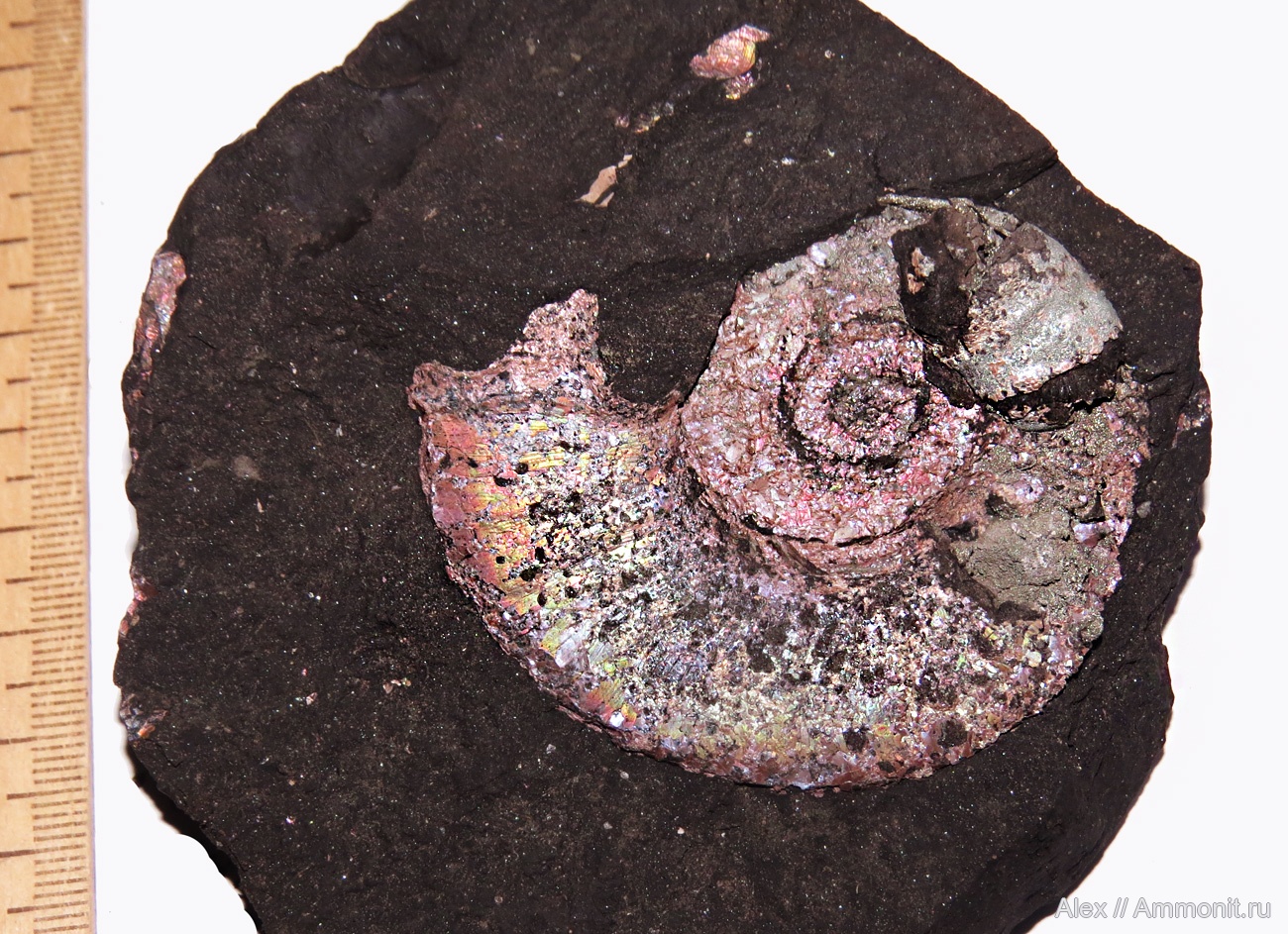 Интересно, а вот сверху над ушком есть ещё какие-то перламутровые остатки. Это от другого аммонита или это было такое длинное ушко? | ||||||