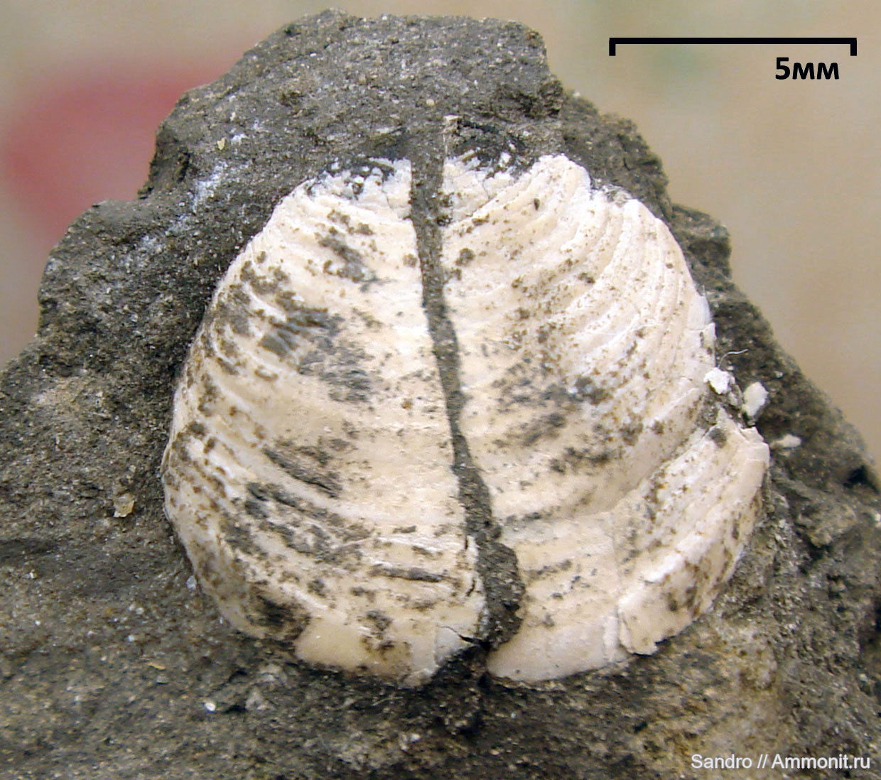 Замечательные аптихи. Подрастворенные, от этого очень ребристые, но хорошие - даже острые передние кончики видны вверху. Интересно что как и у моей находки у них в передней части (по фото верхней) кальцитовой слой растворен сильнее, хотя и не исчез полностью.