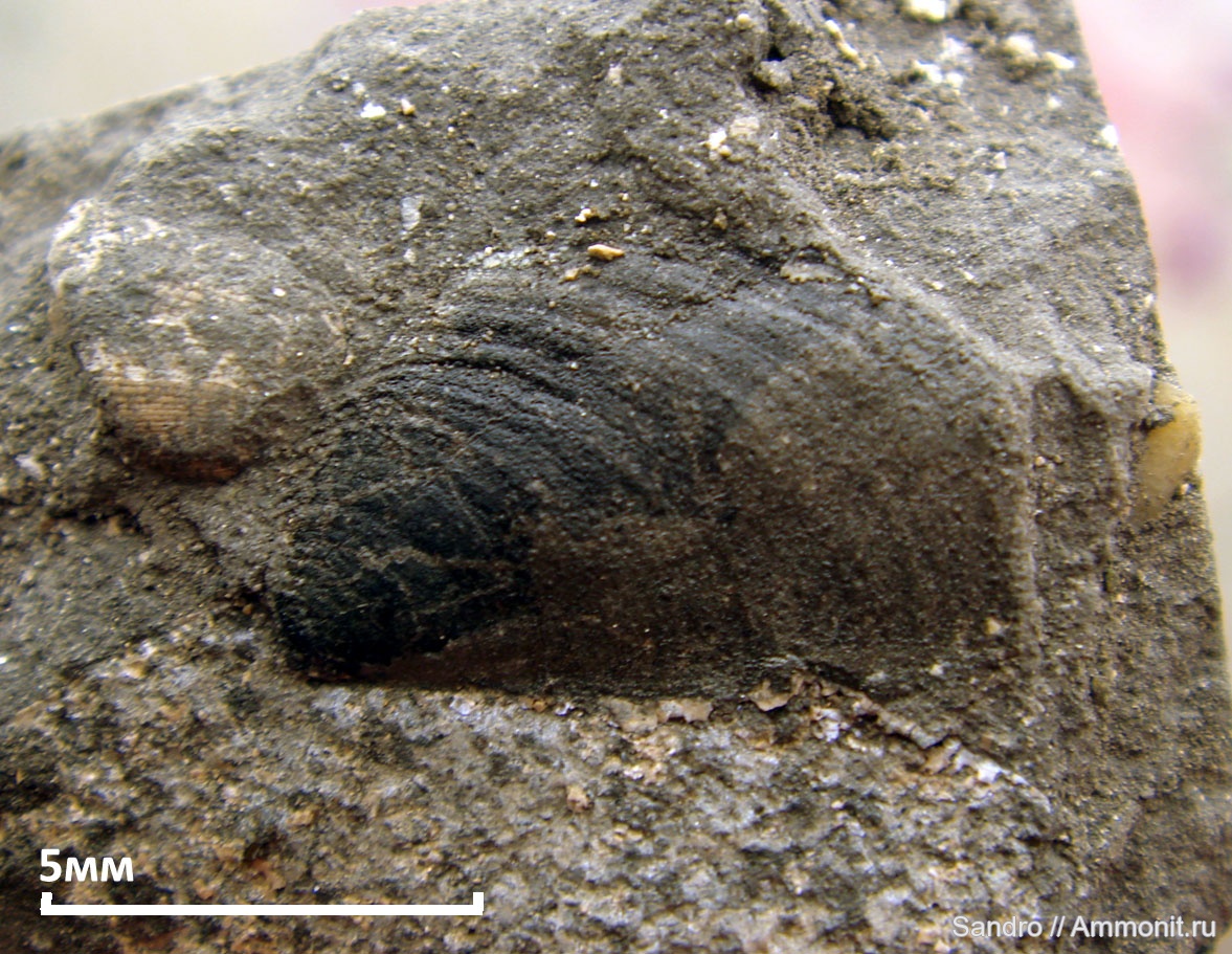 Отсутствие кальцитового слоя наводит на подозрение, а не от Amoeboceras ли аптих? Но форма линий нарастания вроде совсем не амоебоцерасовая, наверно действительно Mirosphinctes. | ||||||