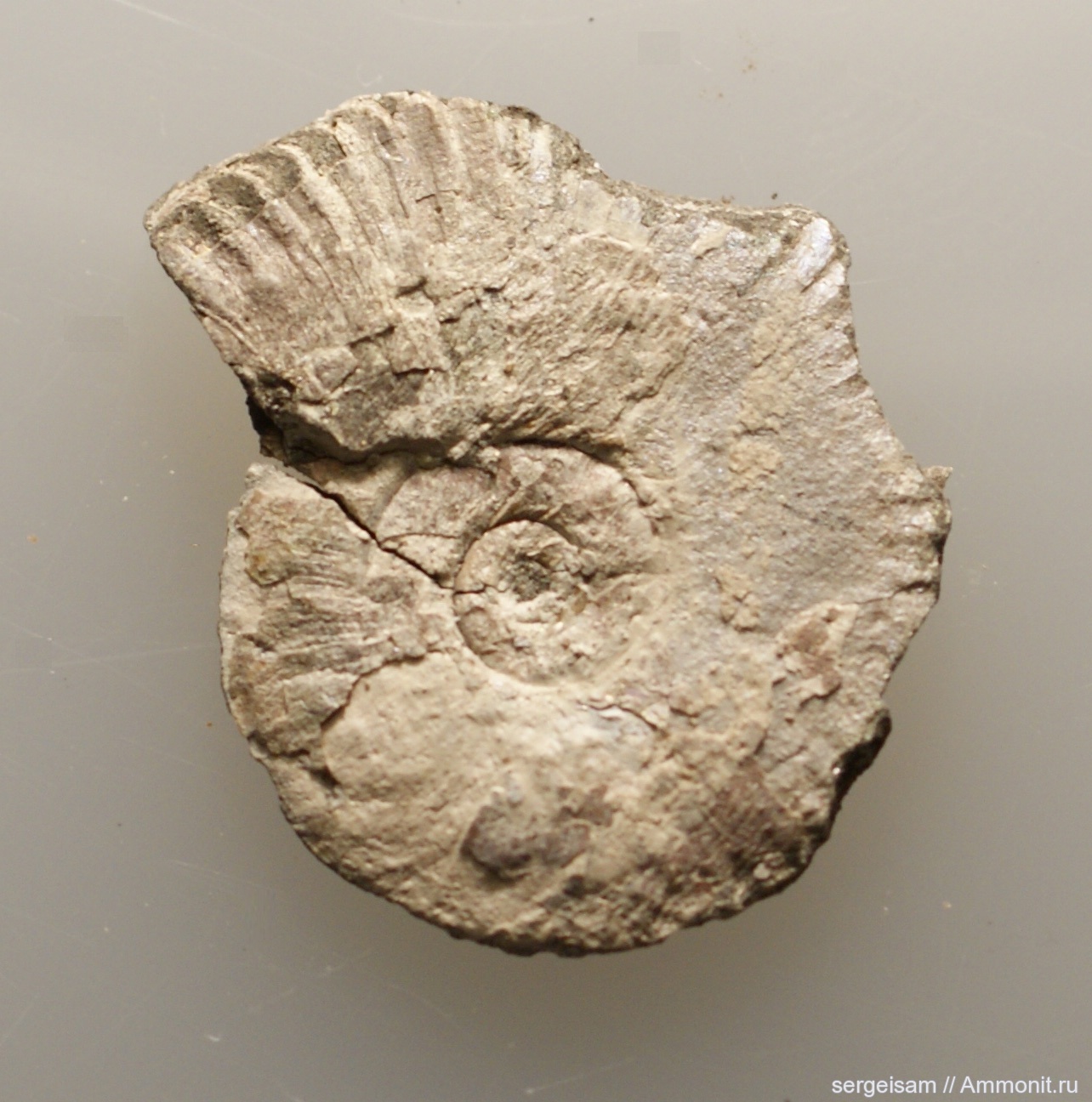 Такие аммониты похожи на гербарий, он абсолютно плоский. Нашел его в зоне serratum. Решил его выставить на сайте по той причине, что этот двухсантиметровый аммонит возможно является микроконхом и он очень похож на Amoeboceras - серединка макроконха . Если это микроконх а не преждевременно скончавшийся макроконх, то наверно ранние обороты макроконхов неотличимы от микроконхов.