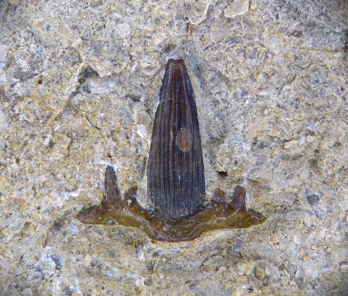 Очень хороший зуб! Тут интересно что мелкие зубки похожи на корень, а центральный заметно отличается. | ||||||