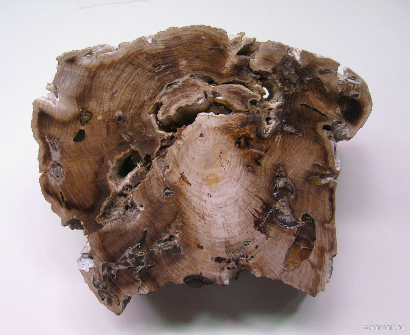 Ходы моллюсков-древоточцев частично заполнены халцедоном.