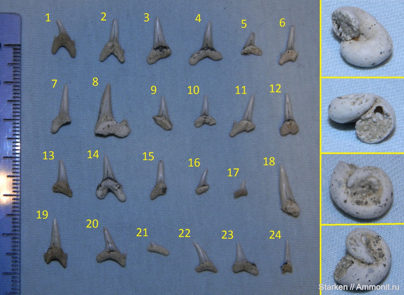Зубы акул из Варавино + ядро гастроподы. Буду благодарен за помощь в определении.