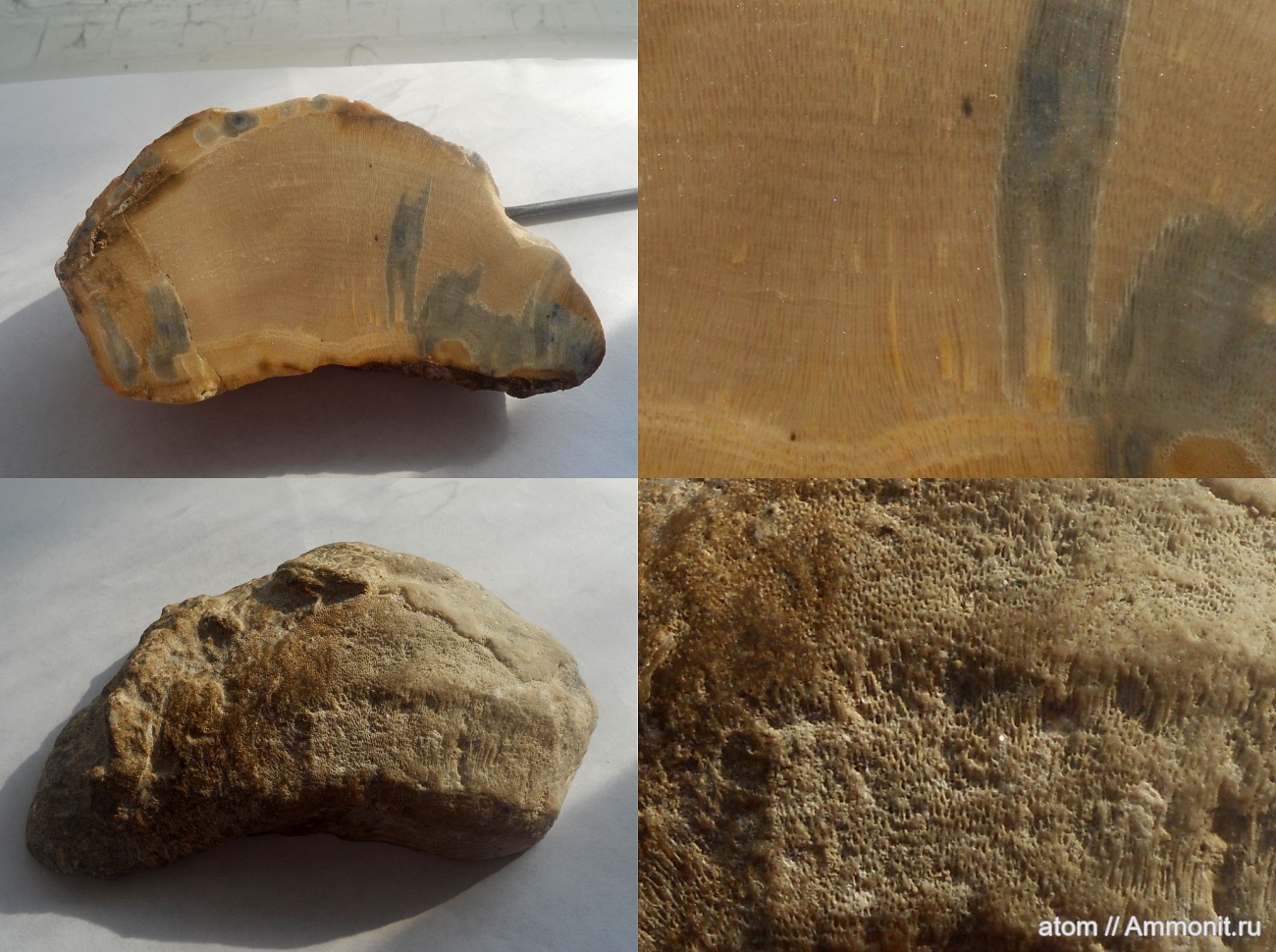 Большое спасибо. Тёмные пятно это (как я понял) замещение кремнием, хотя на верняка не знаю (в определении пород камня не силён). | ||||||