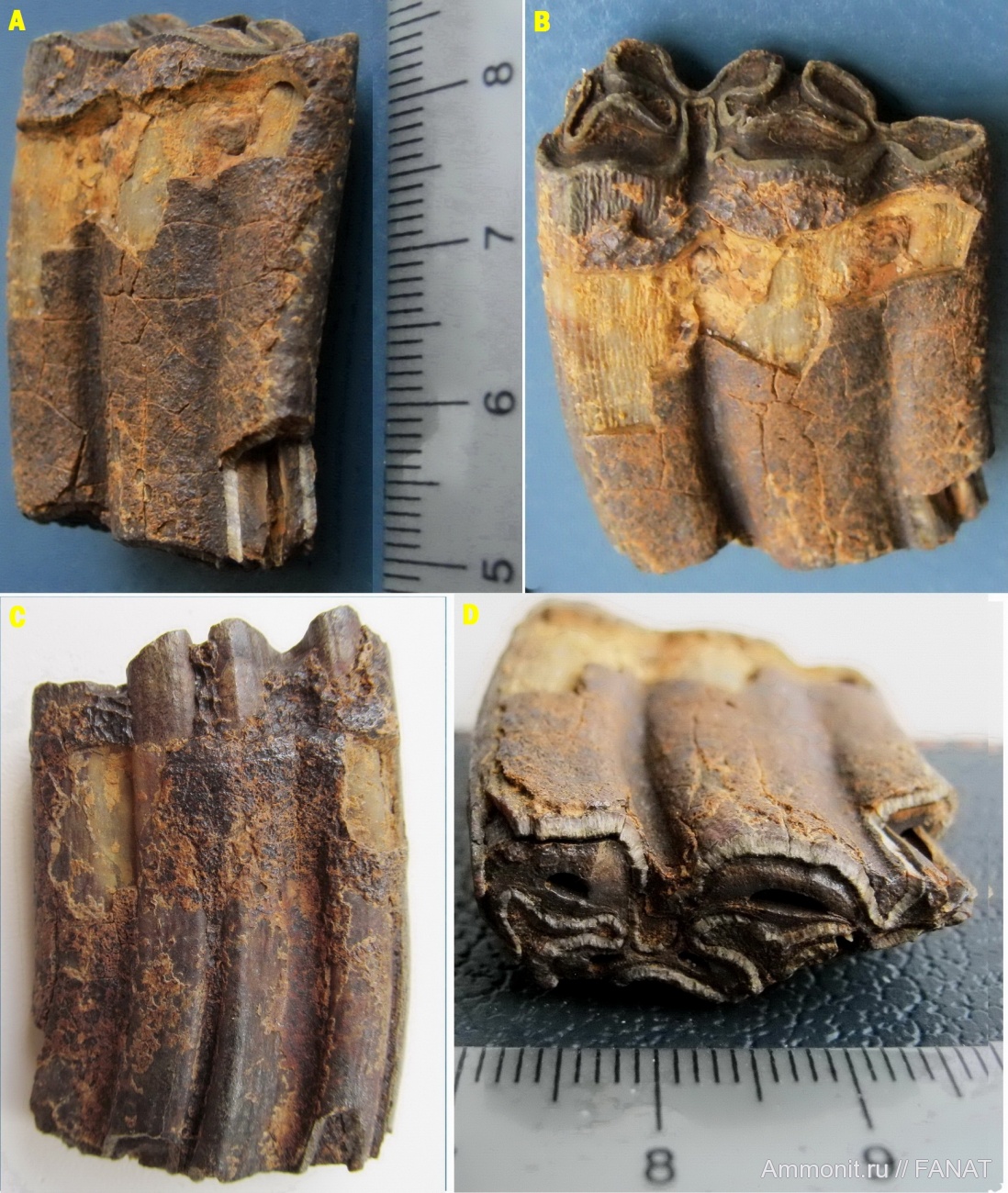 Вид этой находки прямо таки включил лампочку в моей голове )) Долгие годы у меня лежало нечто из плейстоцена между Бердянском и Луначарским, про которое я голову сломал, думая что же это такое, решил уже было, что это натечные образования, а это, вероятно, корни зуба травоядного, просто выглядят абсолютно непривычно. | ||||||