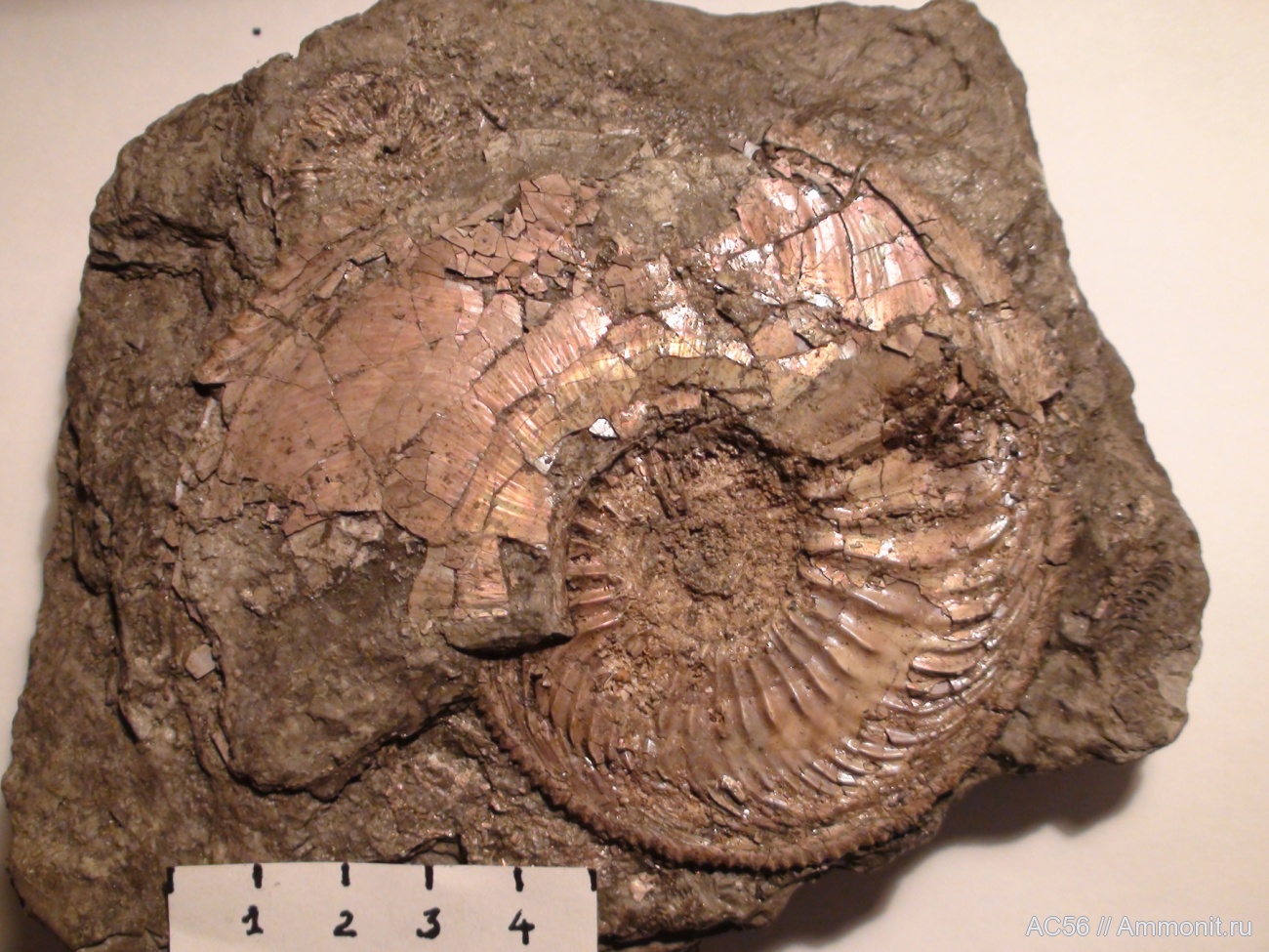 Вот кстати любопытная иллюстрация того, как давленые раковины отличаются от объёмных. Тут рёбра серповидные, почти как у A. ilovaiskii, а ведь скорее всего это из-за того, что мы видим латеральную сторону и половину вентральной как одну плоскость. | ||||||