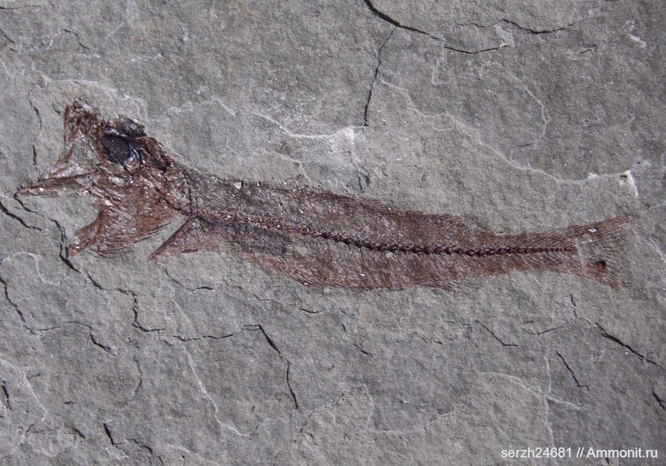 Отпечаток был найден на р.Пшеха при расколе мергелевой плиты.Длинна рыбы 6см.