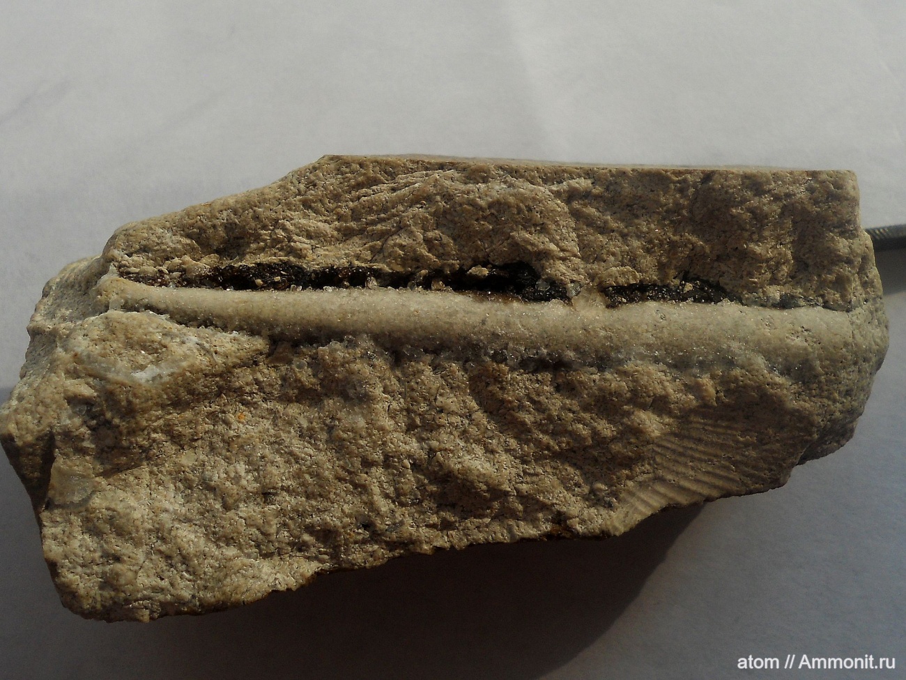 Сама раковина кристаллизовалась, осталось только ядро. Размер 7 см..