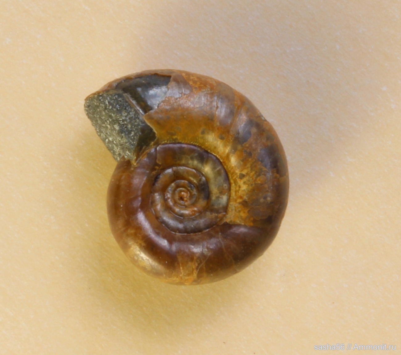 Хоть и маленький, а уже сколько оборотов! И аммонителла на месте. Думаю, что это малёк Eogaudryceras. | ||||||