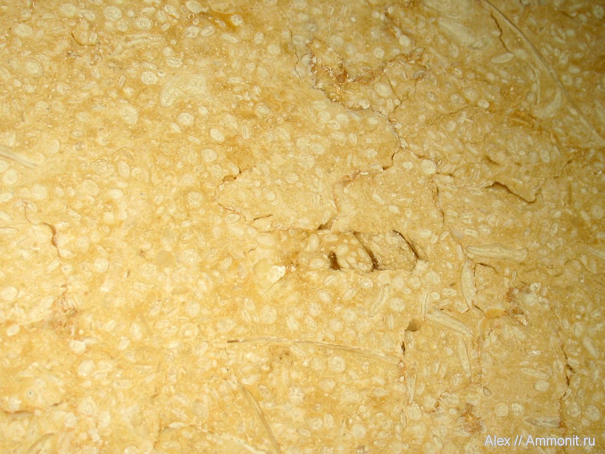 В Израильском курортном городе Нетания на пляж у Средиземного моря можно попасть не только по лестницам, но и на большом лифте (город стоит на довольно высоком скальном уступе). Здание этого лифта облицовано фораминиферовым известняком - на фото видны фораминиферы, срезанные под самыми разными углами.