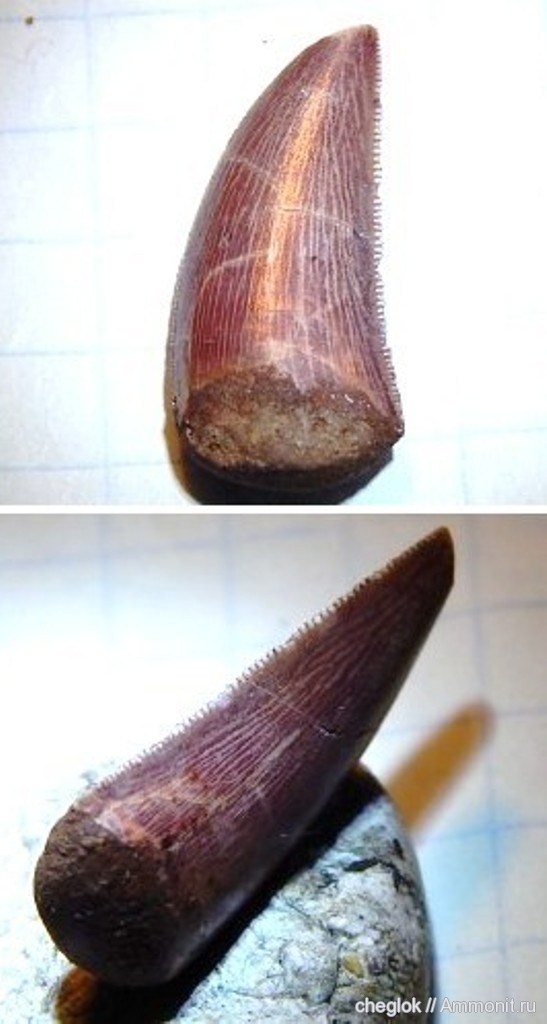 Да не за что . Кстати если интересно по зубам , на палеофоруме есть шикарные статьи по их определению (дино) -от одного американского коллекционера и по мозазаврам одного грамотного товарища из Марокко .Если интересно могу скинуть ссылки. Думаю имея реальный зуб и ключи к определению этого товарища Вы легко определите до какой-то определенной группы. А по фотке -не видя точно форму зазубрин можно и маленького карха с абеллизавридом перепутать. | ||||||