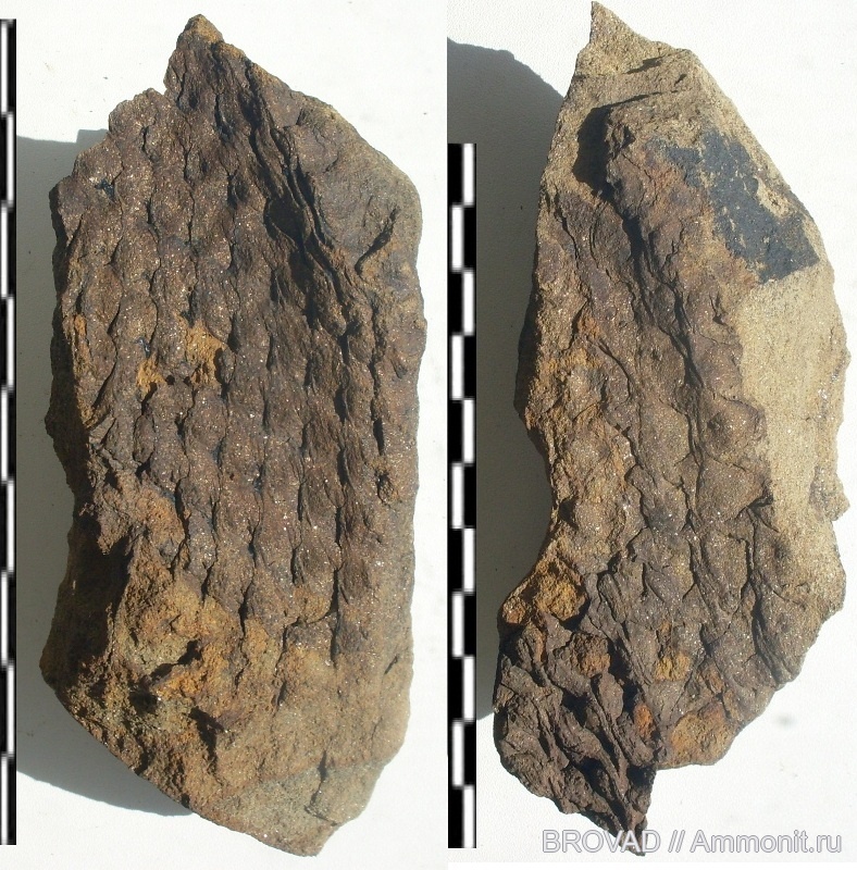 Точно сказать нельзя, из-за плохой сохранности, но думаю, что это был Lepidodendron dichotomum. Определил по нижней части правого образца. | ||||||
