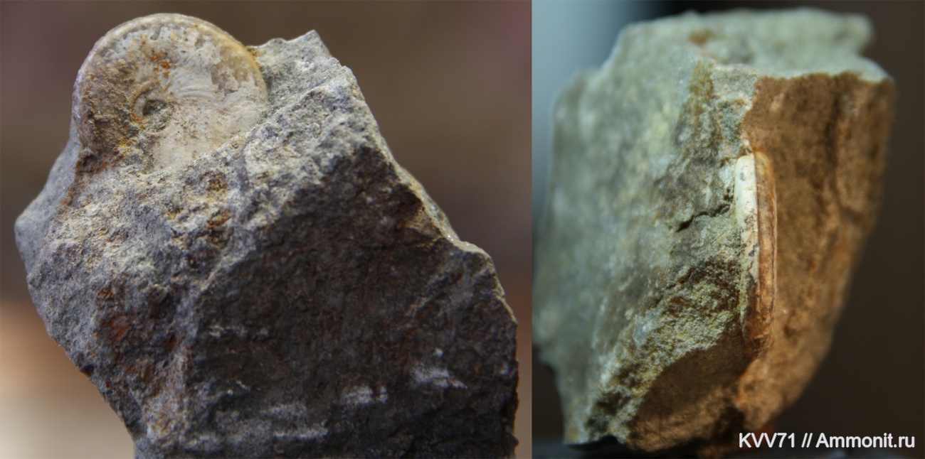 Второй - на р. Хокодзь в устричной банке. Так же там встретились Euphylloceras, гетероморф Ptychoceras puzosianum и Eogaudryceras. Диаметр аммонита 20 мм, толщина 3 мм. На аммоните видно временное устье.