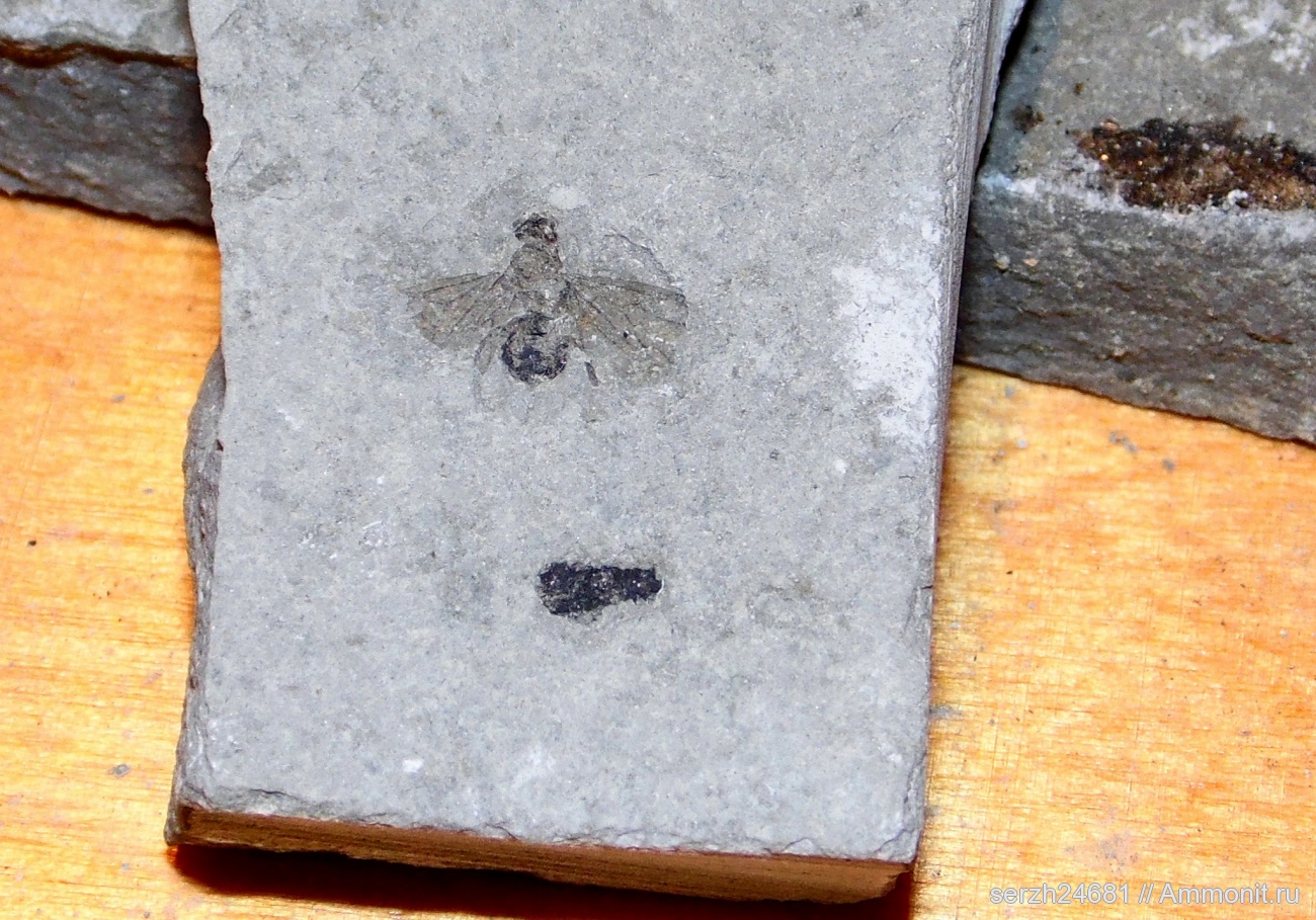 Образец был найден на р.Пшеха при расколе мергелевой плиты.Длинна тельца 6мм. Предположительно относится к перепончатокрылым насекомым.