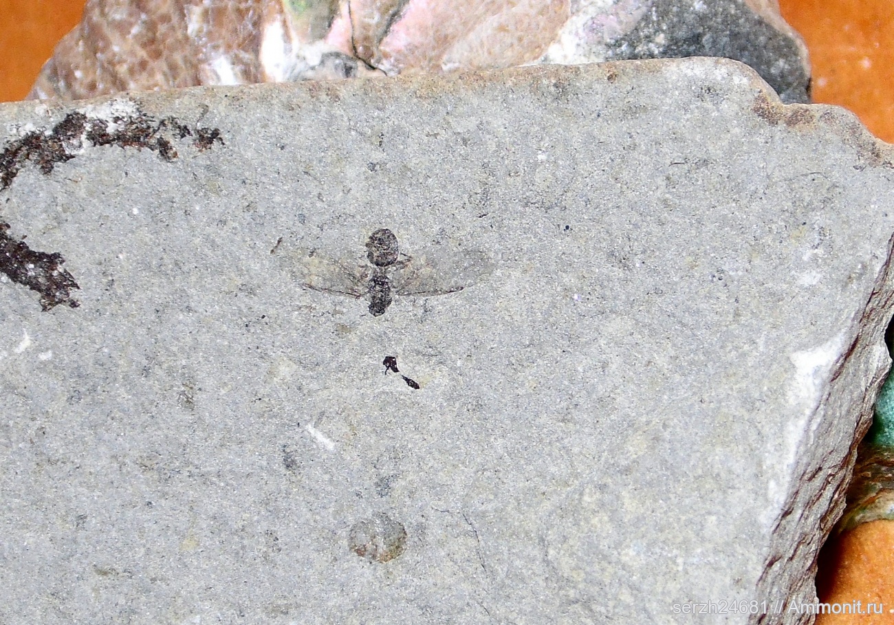 Образец был найден на р.Пшеха при расколе мергелевой плиты.Длинна тельца 5мм. Предположительно относится к перепончатокрылым насекомым.
