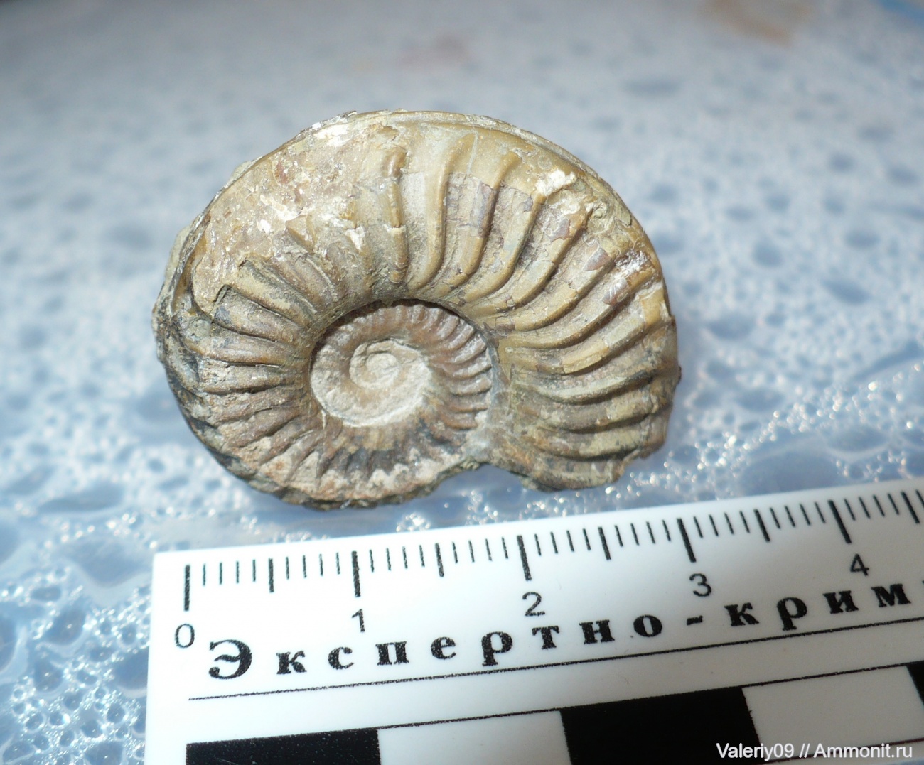 На данном фото не видно вентральную сторону толком. Показать ее я не могу т.к. аммонит уехал от меня. Это начальные обороты, больше половины рассыпалось. Но идентичных у меня хватает. Предполагаю что Grammoceras thouarsense (смотрел в книге Е.С.Станкевич, Аммониты Юрских песчано-глинистых отложений северо-западного Кавказа, 1964 год. таблица V, фигура 1) | ||||||