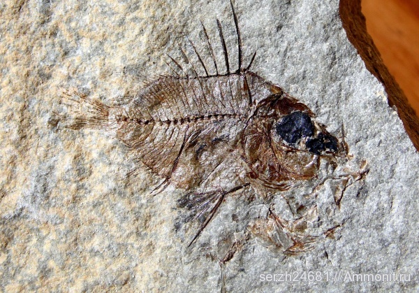 Образец был найден на р.Пшеха при расколе мергелевой плиты.Одна из редковстречающихся видов.Солнечник (Zenopsis clarus Danilshenko).Длинна рыбы 2.7см.