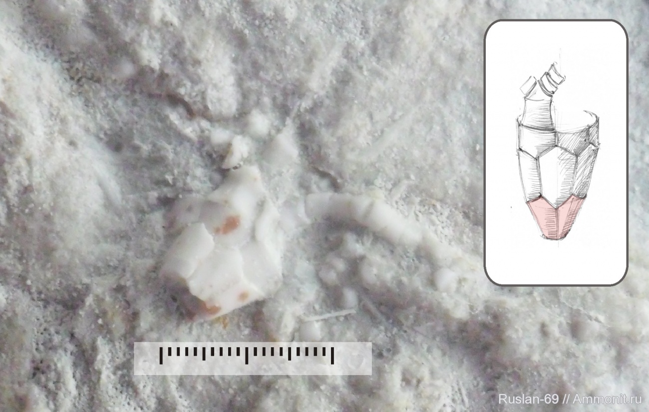С определением соглашусь. В подольском горизонте (если я правильно понимаю находка как раз из подольского горизонта) чашечки гидриокринусов встречаются редко и судя по присутствующей у них скульптуре относятся явно к другому виду чем H. pusillus. Этот экземпляр на них не похож. Теоретически он может принадлежать и вообще другому роду морских лилий, обладающих сходной высококонической чашечкой. Однако ракурс и сохранность не совсем удачные чтобы точно определить. Поэтому определение можно пока оставить. | ||||||