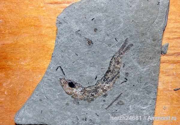 Образец был найден на р.Пшеха при расколе мергелевой плиты.Длинна рыбы 6см.