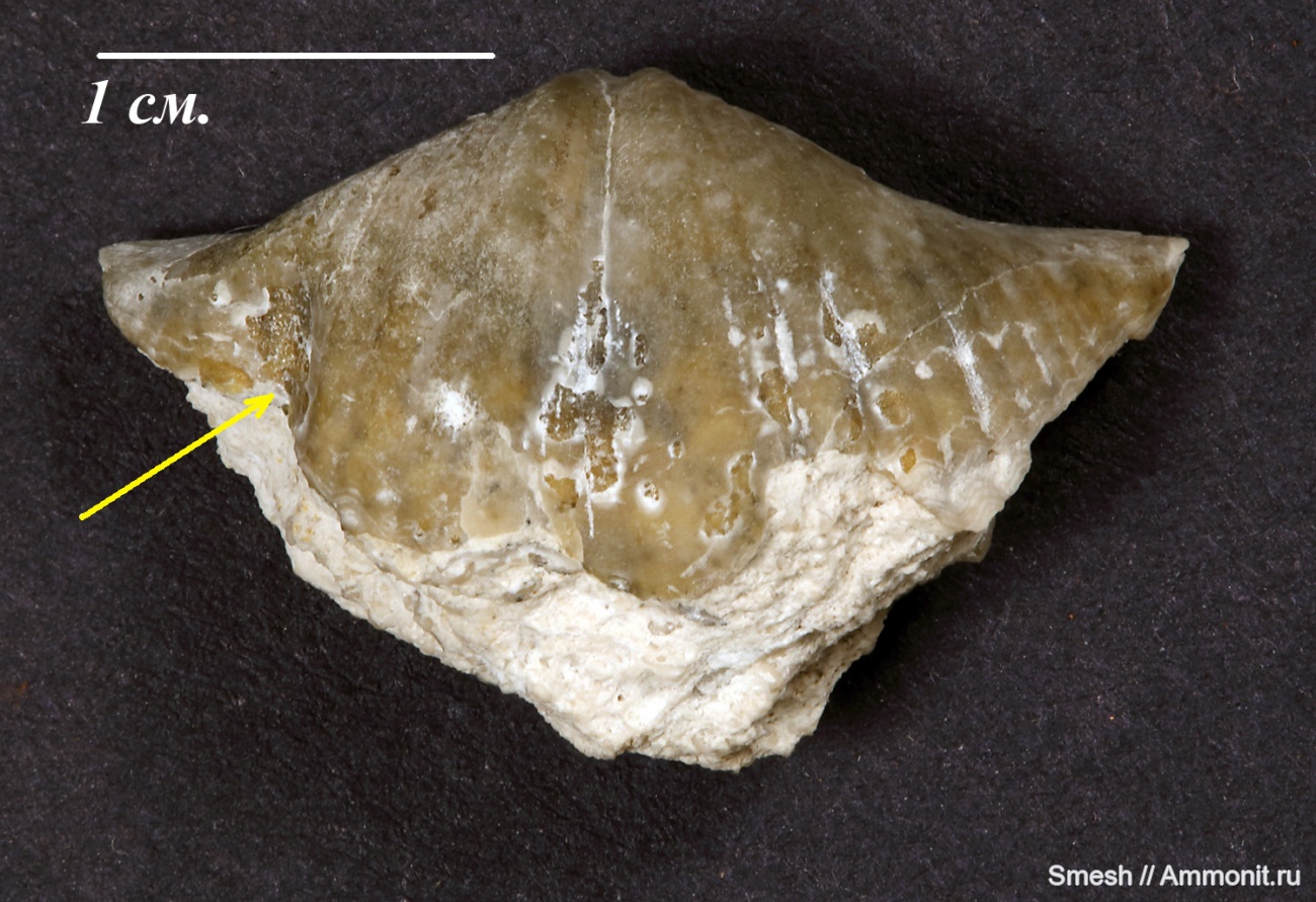 Ключевые слова (тэги): брахиоподы, карбон, Brachythyrina, прижизненные повреждения, средний карбон, Spiriferida, Brachythyrina kleini