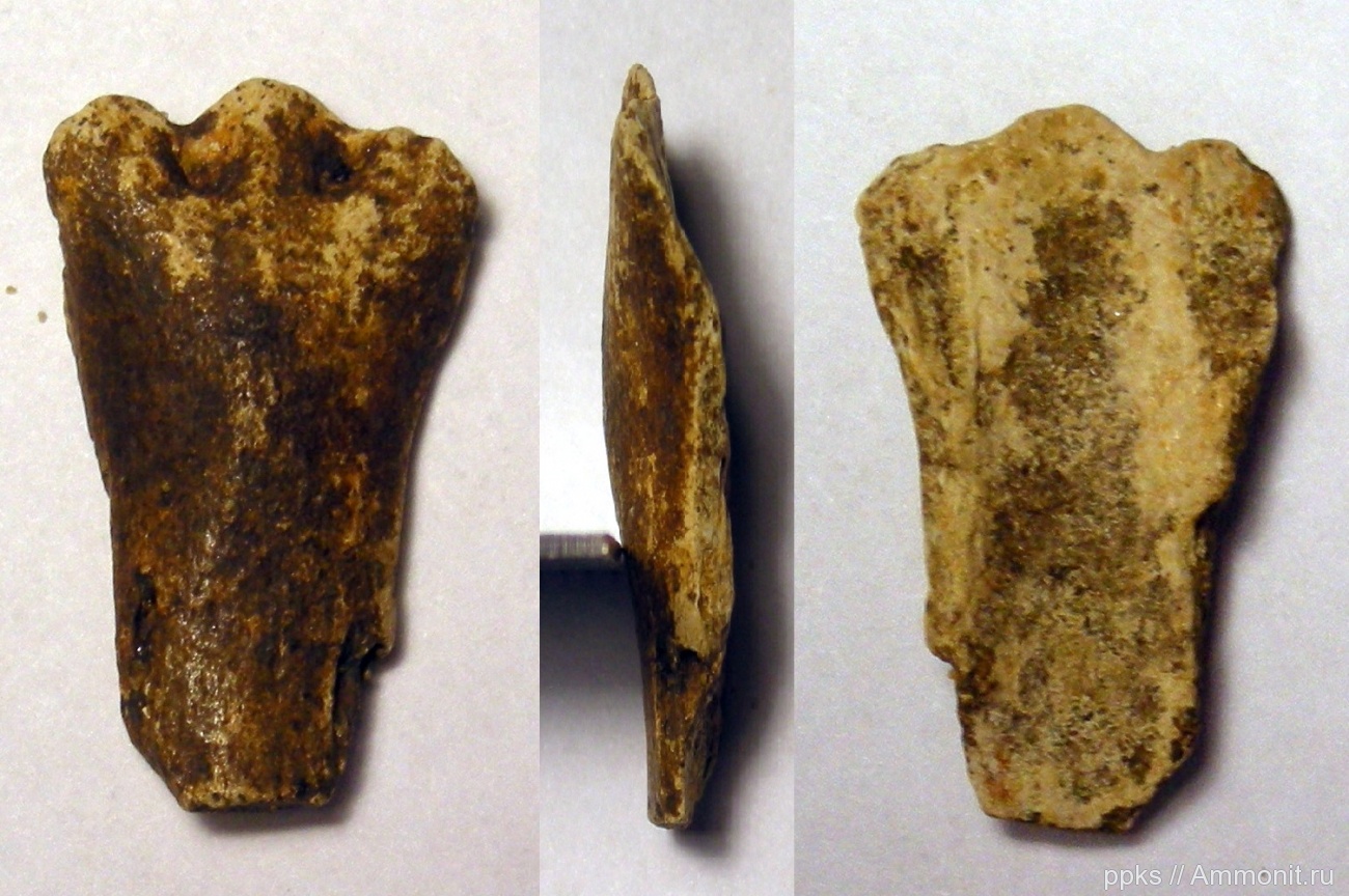 Посмотрел видеолекцию Е.В. Попова "Мезозойские химеры: знакомство",(http://www.youtube.com/watch?v=HPx-_6KFUk0) там хорошее слайдовое сопровождение, фронтальные кластеры представлены на 12:56. Очень похожий там на рис.3, характерное треугольное основание с двумя выемками, если Вам не трудно, просмотрите, а то может я ввожу себя и других в заблуждение. | ||||||