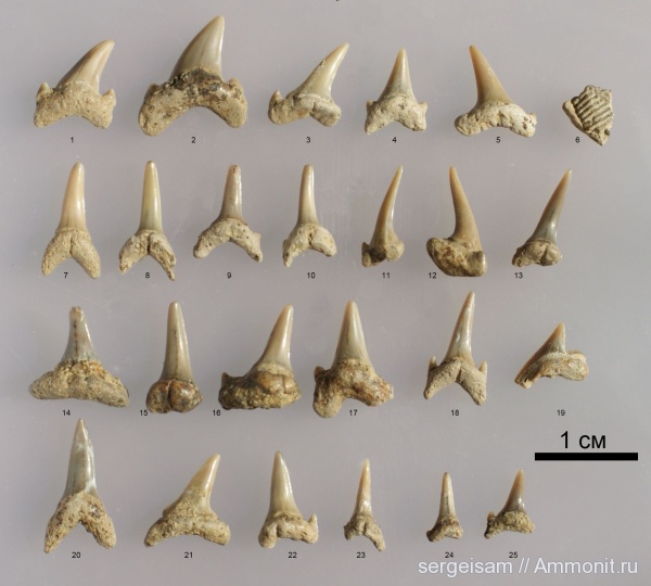 31 мая впервые побывал в Варавинском оврагет это мой первый "улов". Все зубы за исключением №6 (пластина химеровой рыбы?) помоему принадлежат Eostriatolamia subulata, в чем я могу и ошибиться.