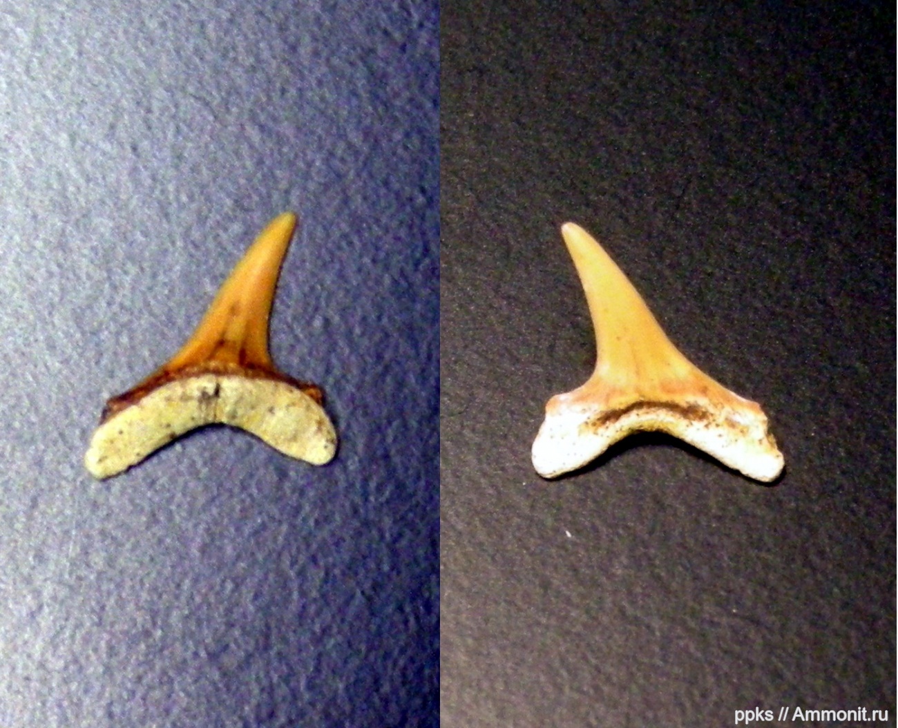 Большую часть зубов акул уже различаю, но этот имеет особенную форму строения и коронки и корня, помогите с определением.
