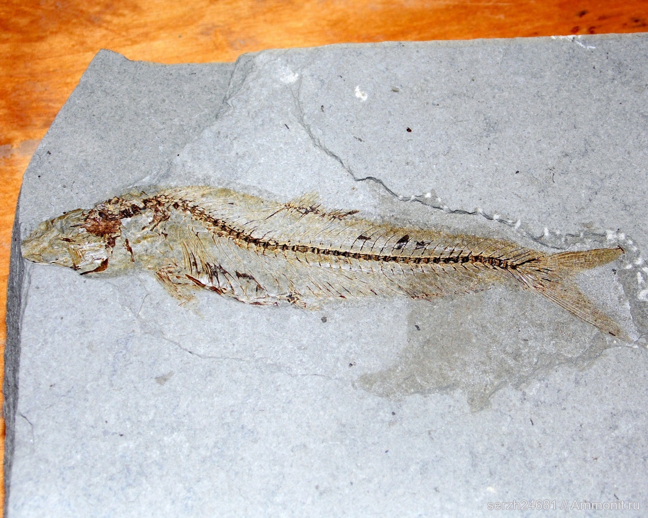 Образец был найден на р.Пшеха при расколе мергелевой плиты.Длинна рыбы 14см.Предположительно принадлежит к семейству сельдевые (Clupea sp ).