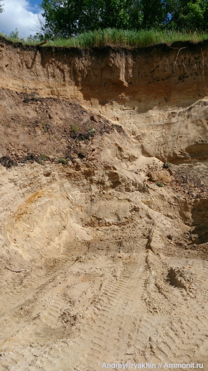 Вид на карьер "Любаново" Орловская Область. Сам по себе карьер является "неофициальным", занимает порядка 5000 кв.м , имеет глубину не более 15 метров. Экскаватор приезжает очень редко и поэтому, вскрытые пласты можно наблюдать, никому не мешая, в течении очень долгого времени.