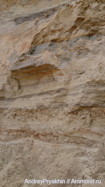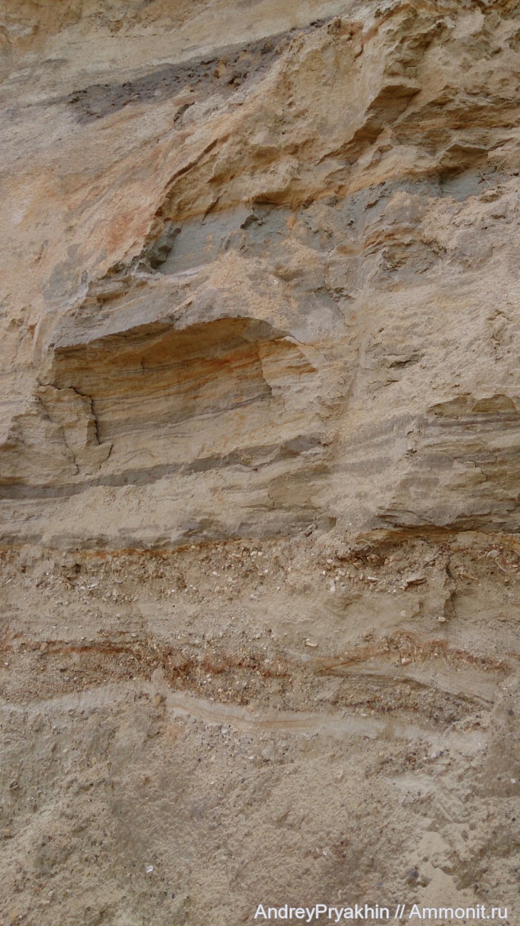 Вид слоя морских отложений на карьере "Любаново" (Орловская область).