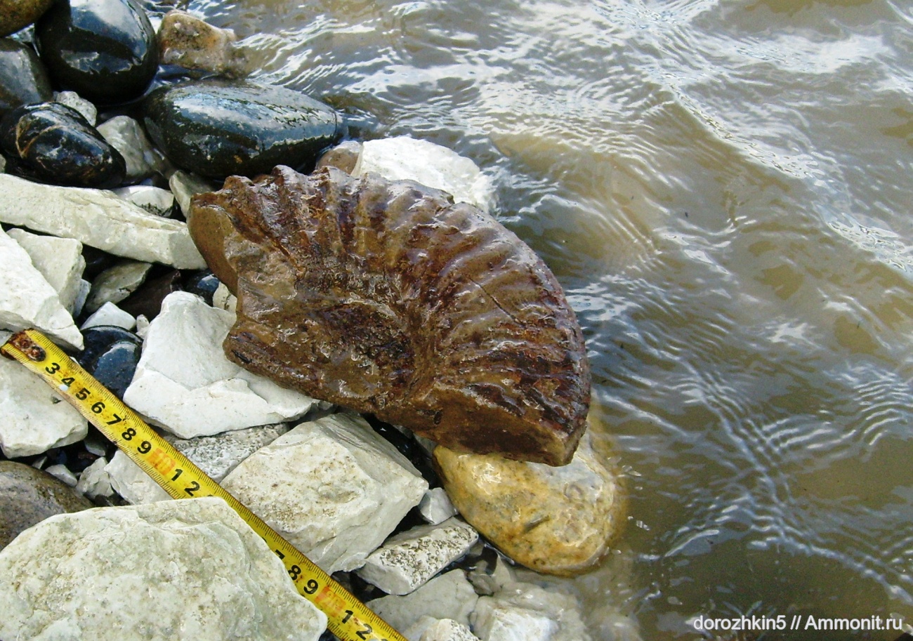 На берегу реки Кубань часто попадаются крупные куски аммонитов, река поработала, наломала, обкатала.